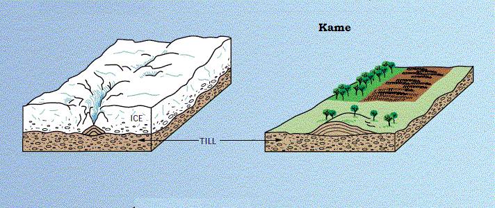 (pothole): a chunk of ice sitting in a depression eventually melts, leaving behind its load of gravel.