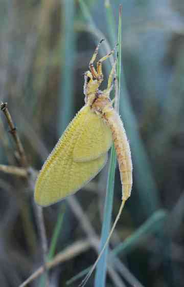 The nymph molts twice to take on this adult form, lives for a few hours to breed, then dies.