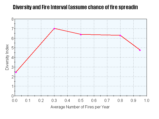 you can alter the susceptibility of different species to burning and their succession rate to see how these factors influence diversity.