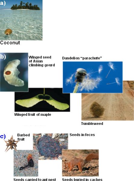 - Some fruits, such as coconut, can float on water and be dispersed to faraway places.