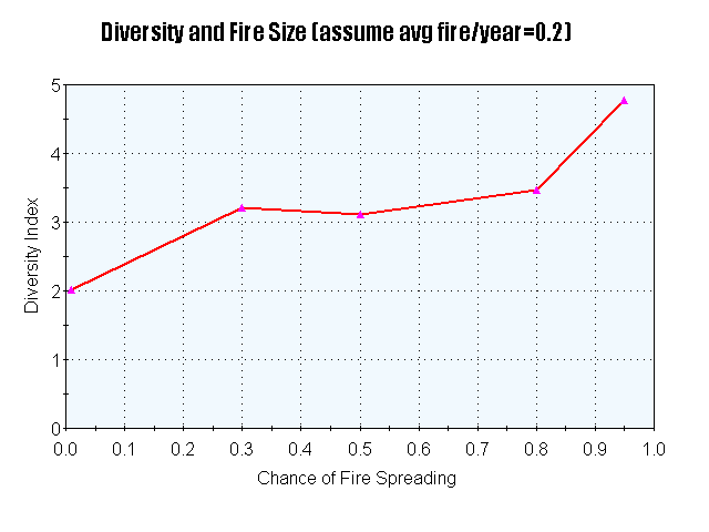 you can alter the susceptibility of different species to burning and their succession rate to see how these factors influence diversity.